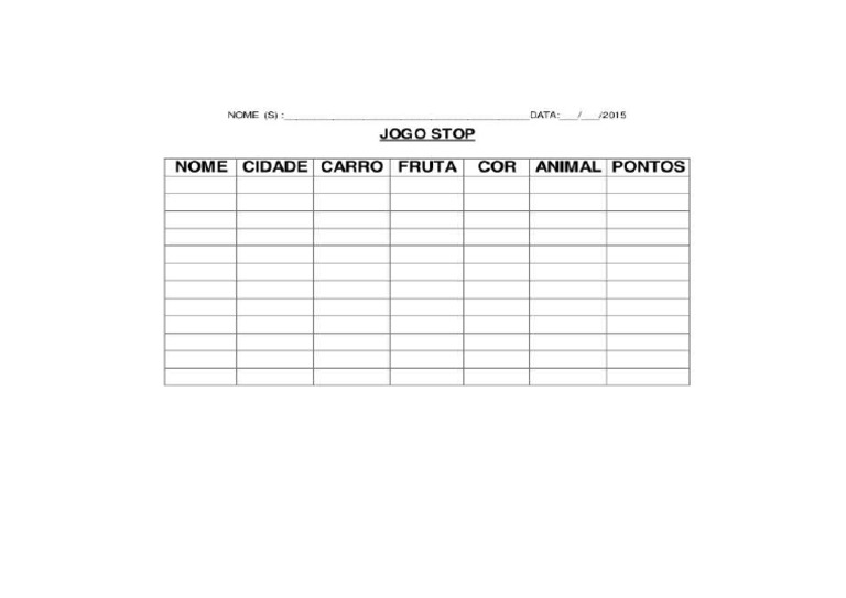 Jogo Do Stop Categorias Portugal / Atividades De Escrita Jogo Stop / Serás o primeiro a dizer stop!?